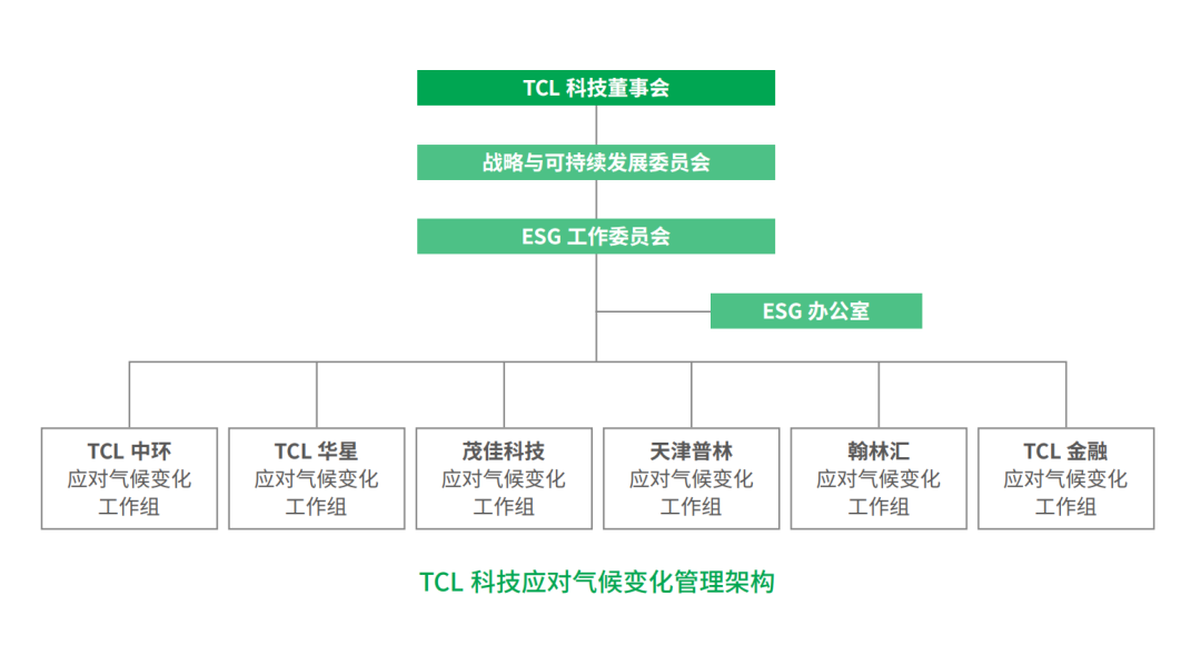 ]article_adlist-->作为全球领先的科技制造企业,TCL科技始终将可持续发展理念深度融入企业战略与日常运营。2023年,公司提出“2030年前实现碳达峰、2050年前实现自身运营碳中和”的双碳目标,并构建了由董事会领导的气候治理体系,通过战略与可持续发展委员会及ESG工作委员会,系统推进气候变化应对与能源管理工作。