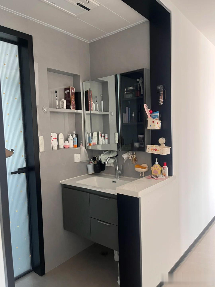 其次,乱糟糟的洗漱用品堆积在台面上,看着也会让人心烦意乱。